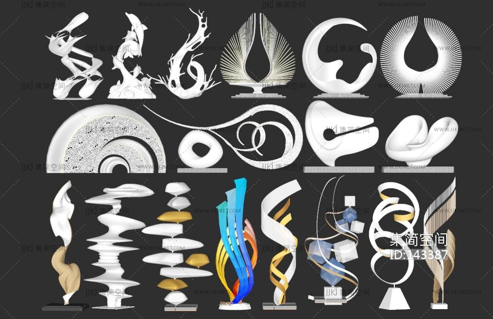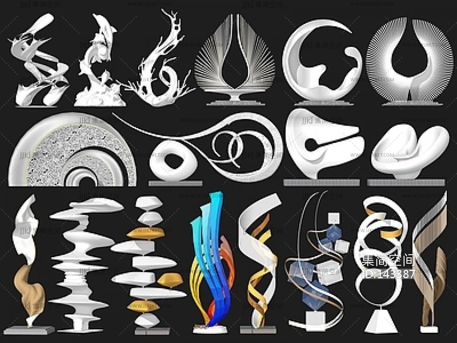 现代抽象雕塑小品SU模型 su草图模型下载 [模型ID:143387]
