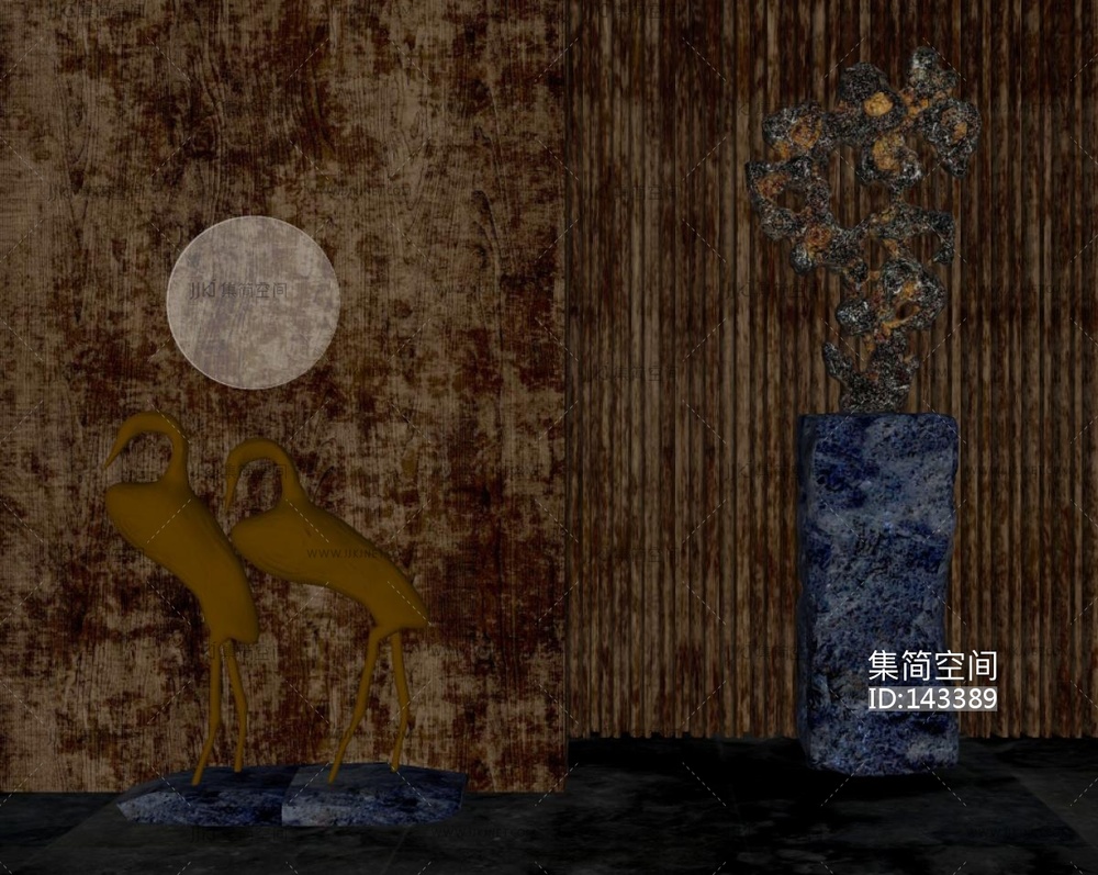 新中式太湖石雕塑装置SU模型 su草图模型下载 [模型ID:143389]