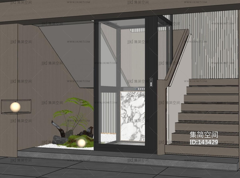 现代楼梯电梯间SU模型 su草图模型下载 [模型ID:143429]
