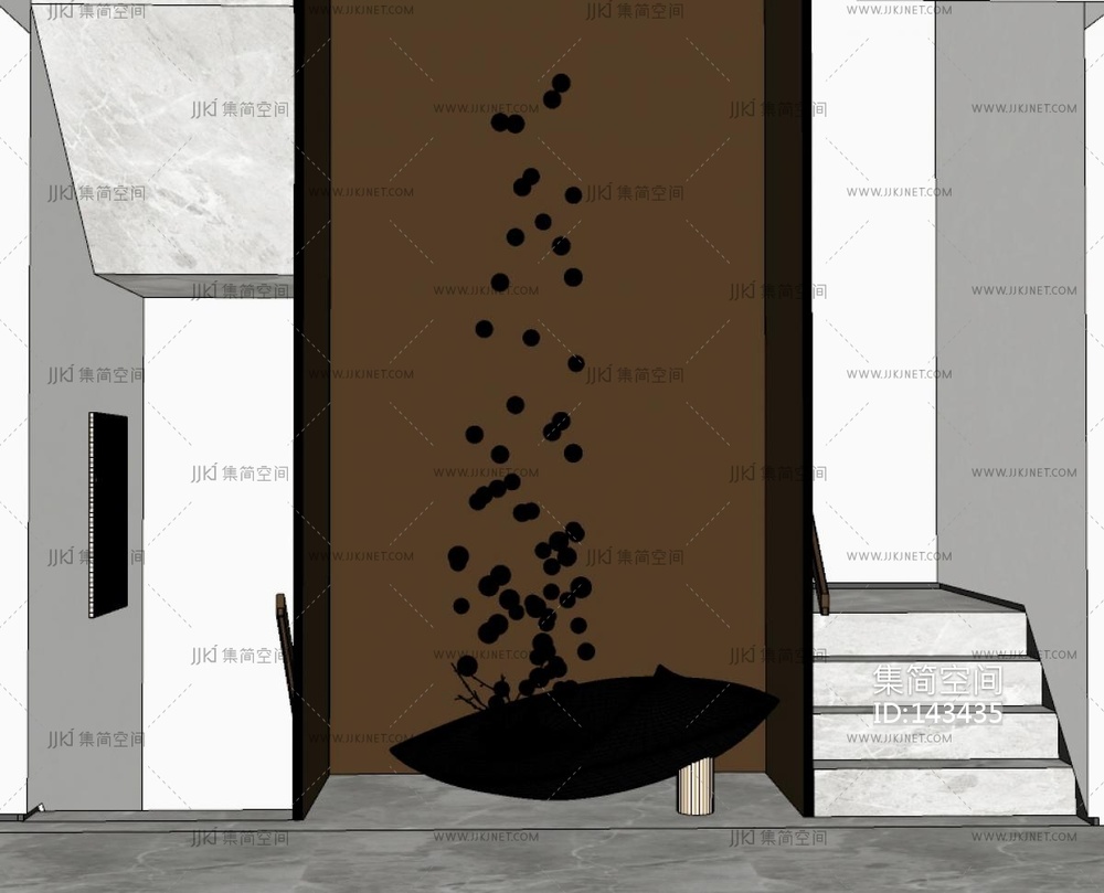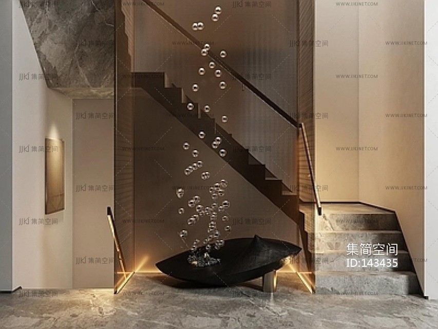 现代别墅楼梯间SU模型 su草图模型下载 [模型ID:143435]