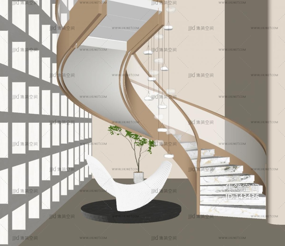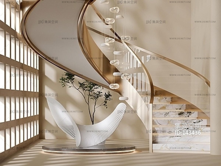 现代旋转楼梯,楼梯间SU模型 su草图模型下载 [模型ID:143436]