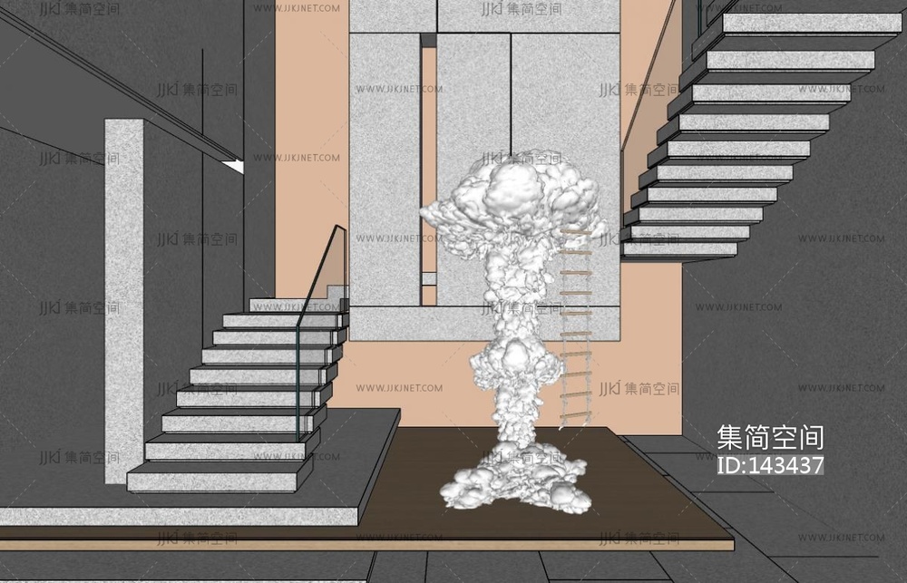 现代楼梯间,悬浮楼梯SU模型 su草图模型下载 [模型ID:143437]