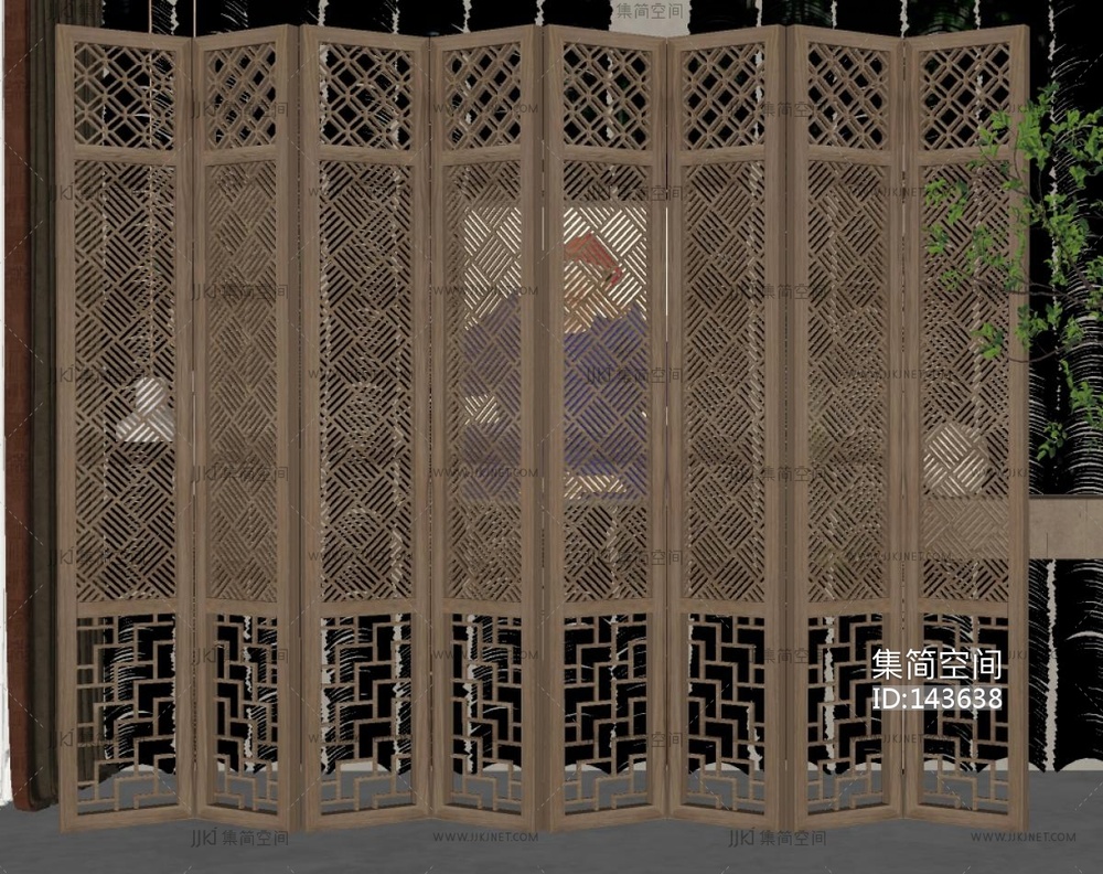 新中式花格屏风隔断SU模型 su草图模型下载 [模型ID:143638]