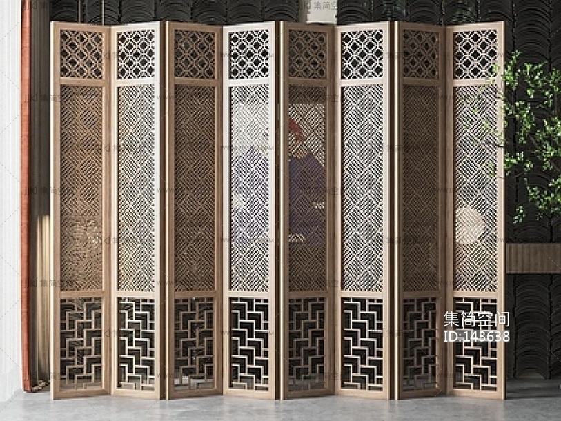 新中式屏风隔断 su草图模型su草图模型下载