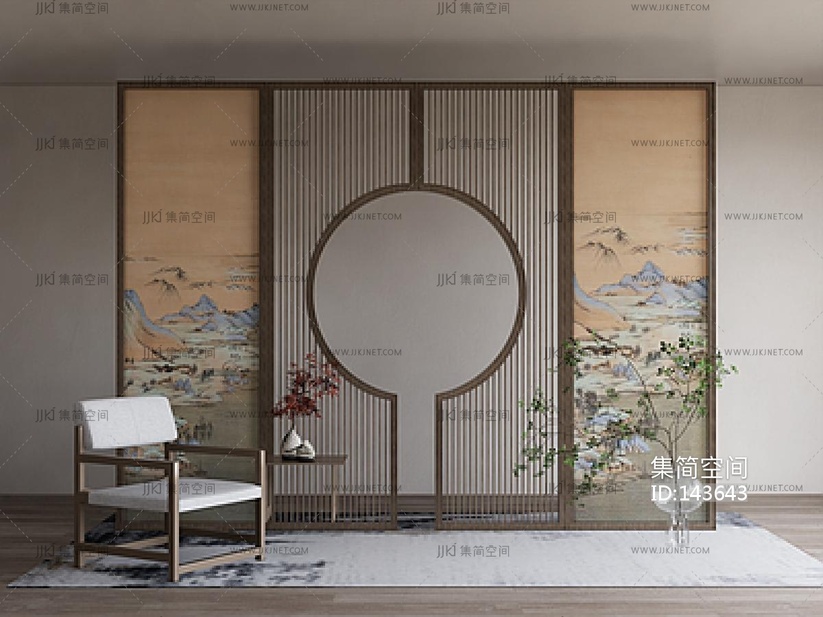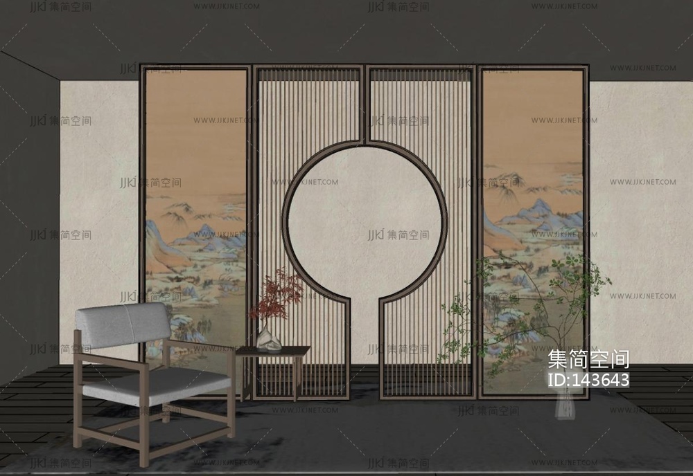 新中式隔断屏风SU模型 su草图模型下载 [模型ID:143643]