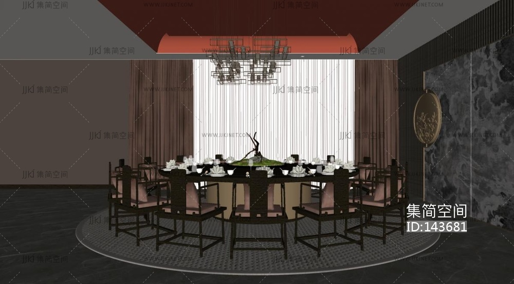 新中式酒店包厢-包间 su草图模型下载 [模型ID:143681]
