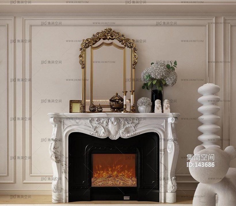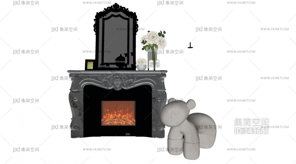 03-法式壁炉 su草图模型下载 [模型ID:143686]