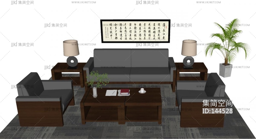 现代办公沙发茶几组合SU模型 su草图模型下载 [模型ID:144528]