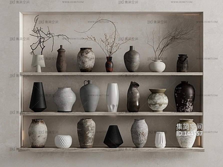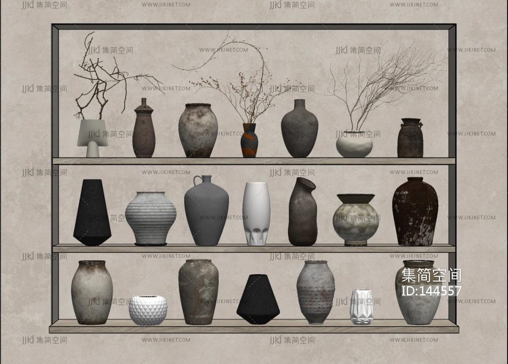侘寂陶罐组合SU模型 su草图模型下载 [模型ID:144557]