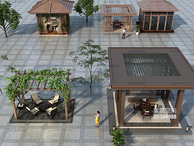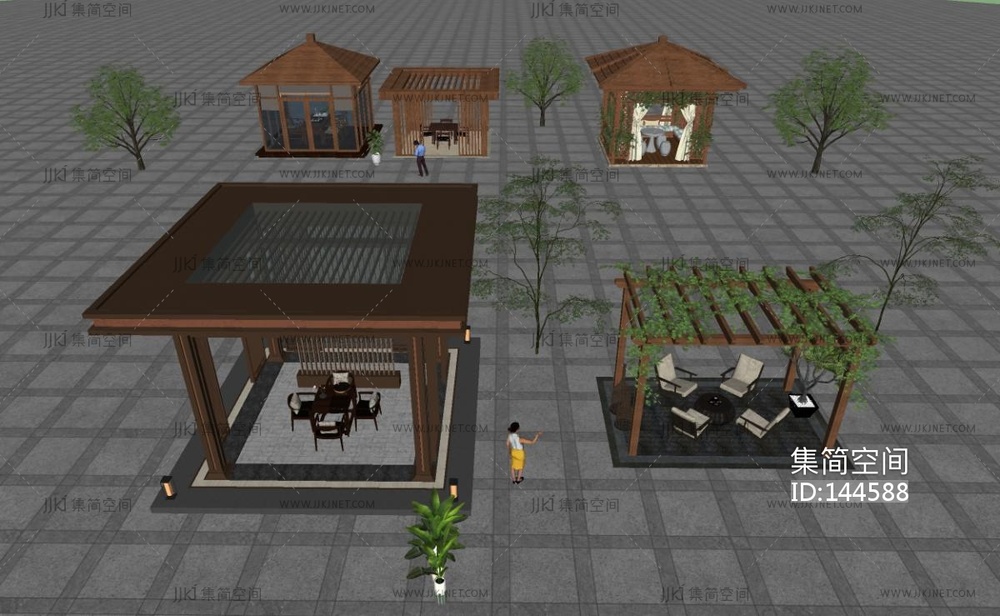 新中式凉亭,廊架SU模型 su草图模型下载 [模型ID:144588]