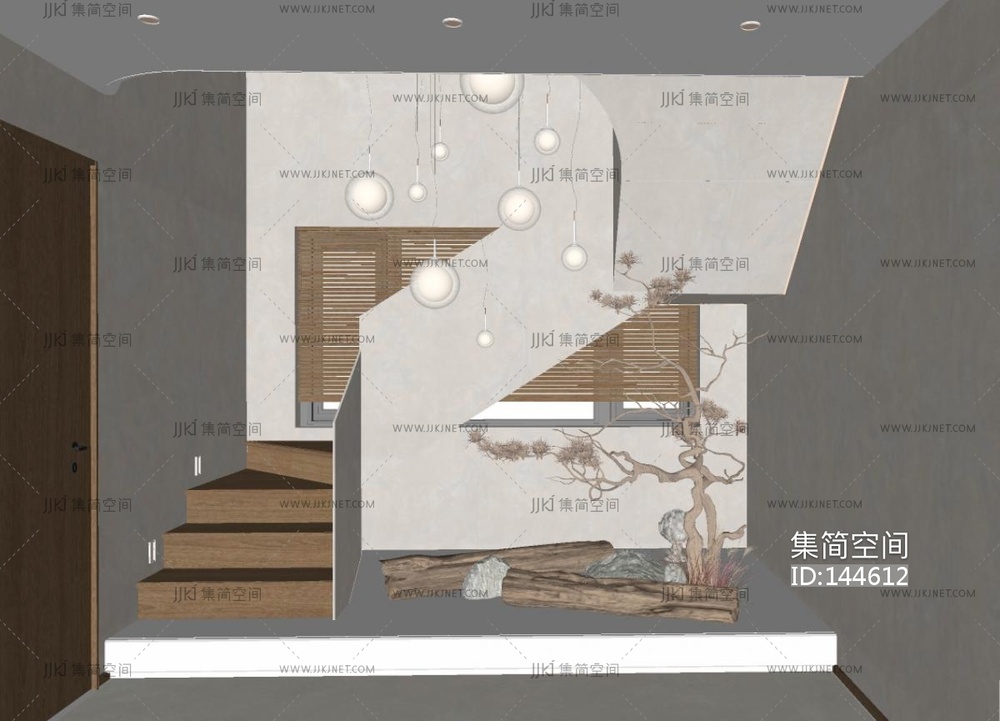 现代楼梯间SU模型 su草图模型下载 [模型ID:144612]