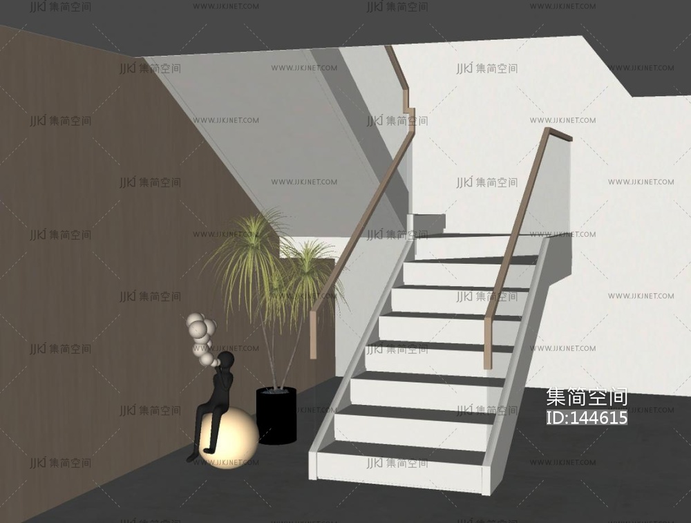 侘寂风楼梯间SU模型su草图模型下载
