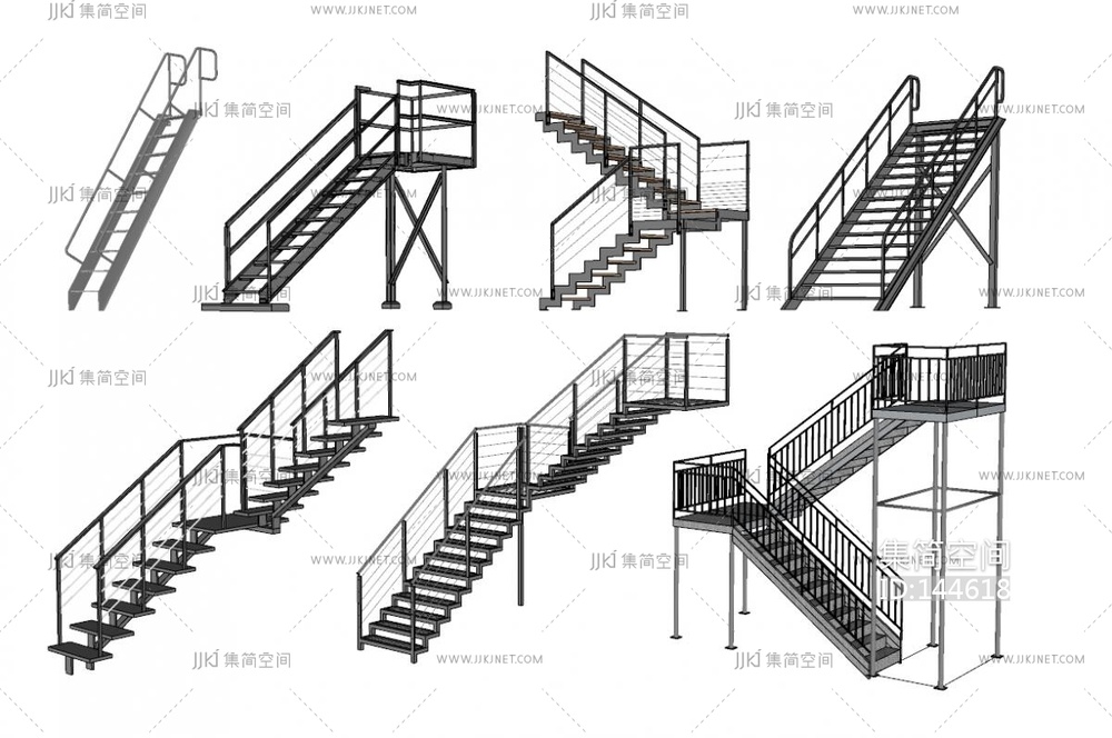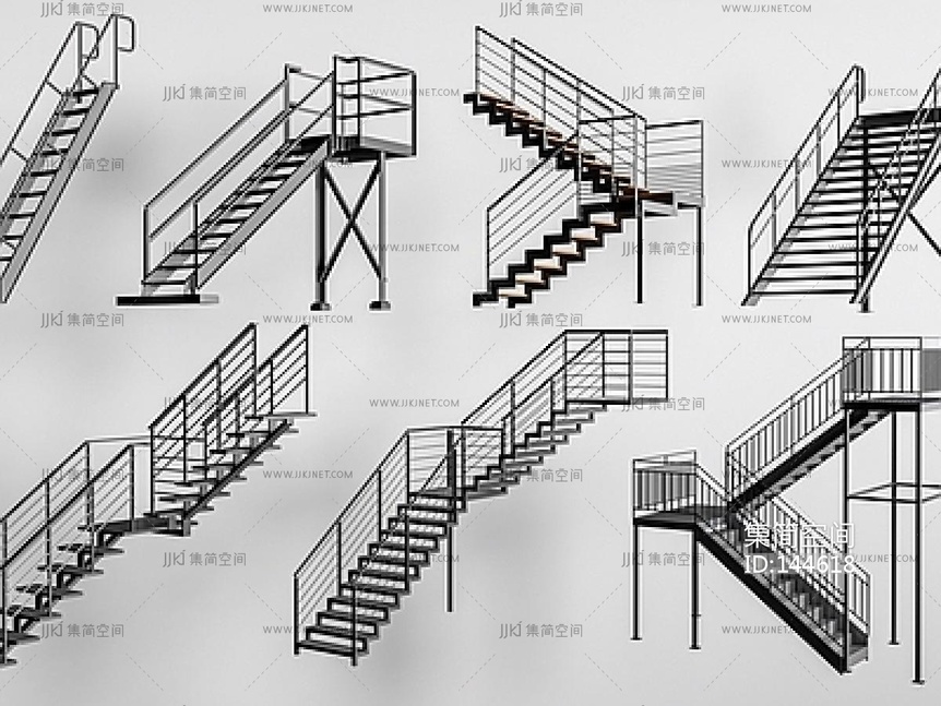 现代楼梯,钢结构楼梯SU模型 su草图模型下载 [模型ID:144618]