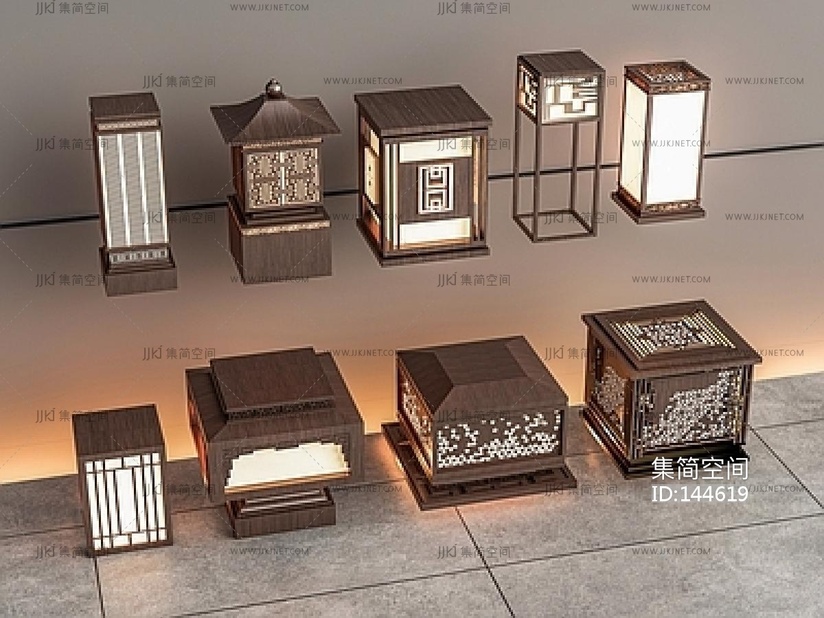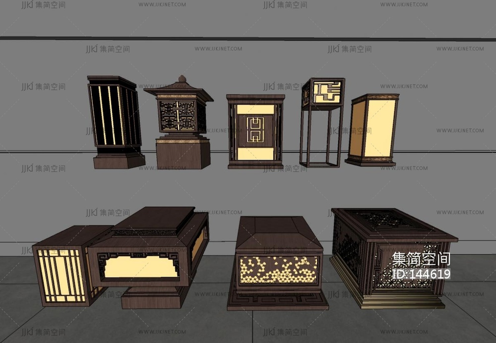 新中式景观灯具组合SU模型 su草图模型下载 [模型ID:144619]
