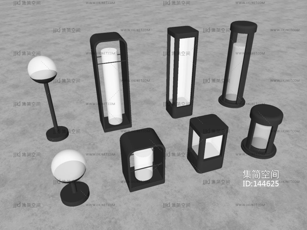 现代新中式景观灯SU模型 su草图模型下载 [模型ID:144625]