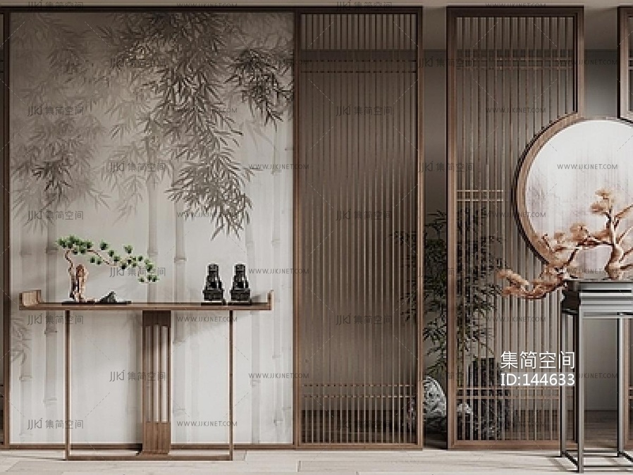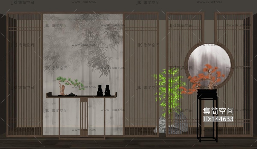 新中式隔断SU模型 su草图模型下载 [模型ID:144633]