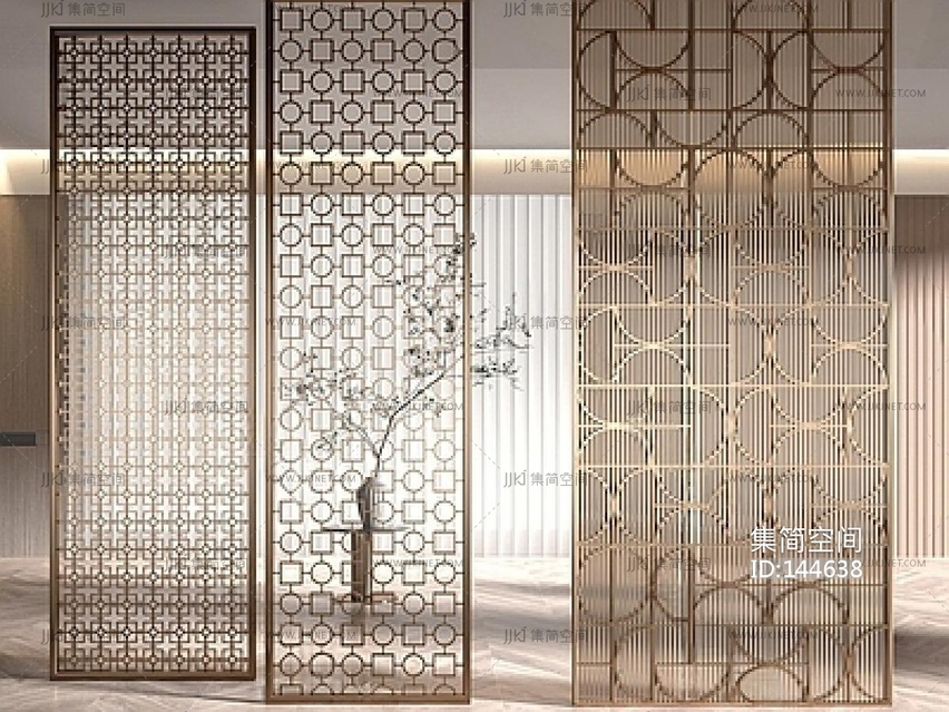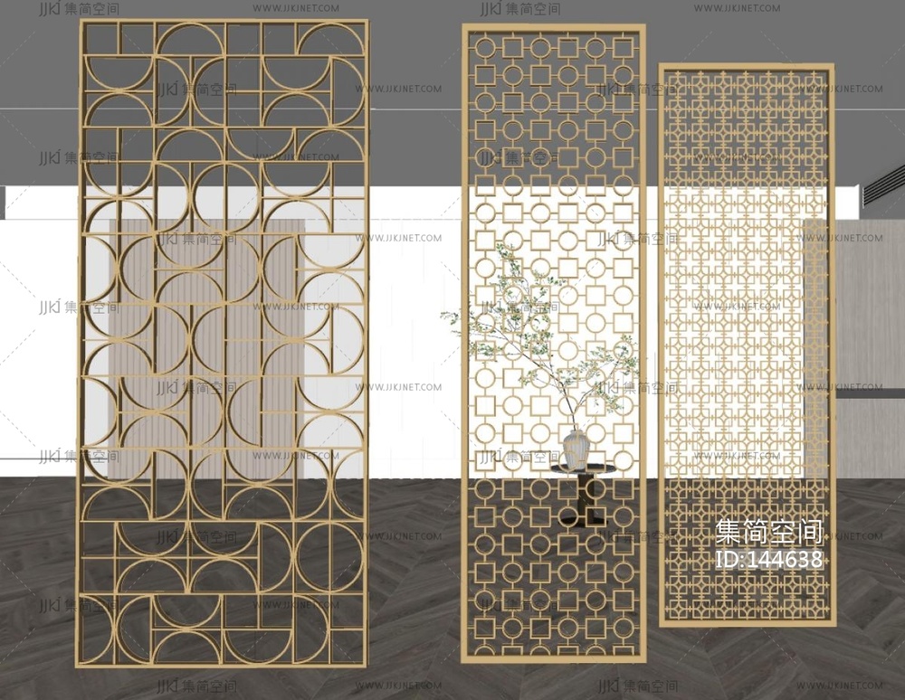 现代酒店金属铁艺隔断SU模型 su草图模型下载 [模型ID:144638]