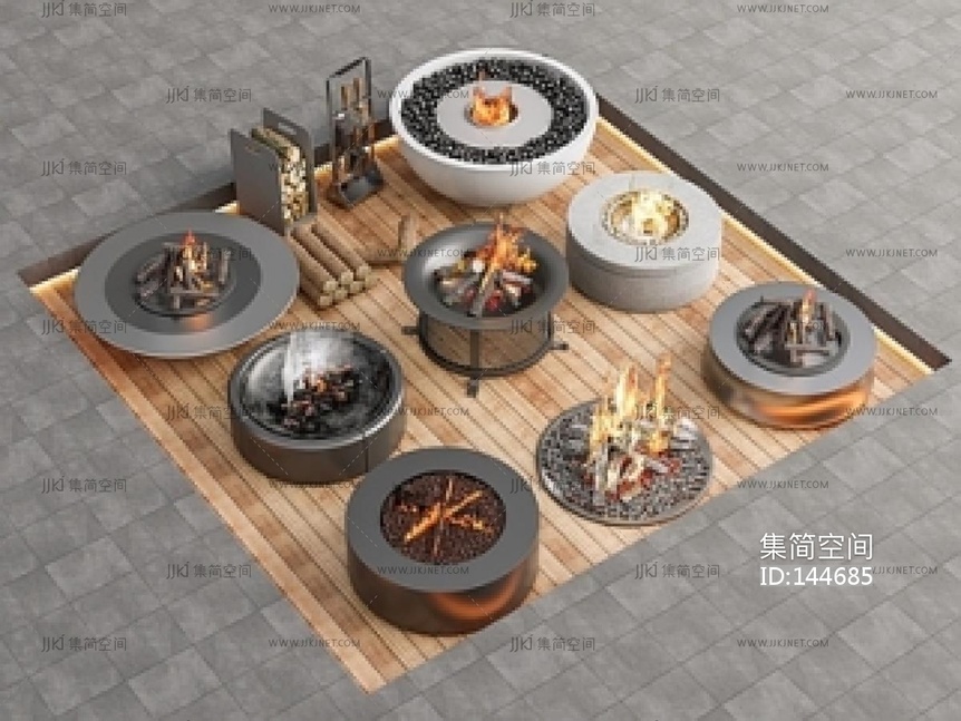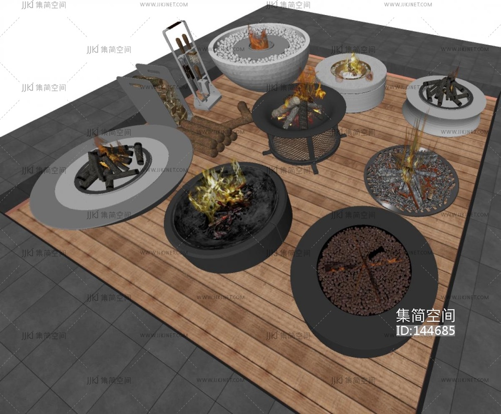 现代新中式庭院小品,篝火火盆,壁炉SU模型 su草图模型下载 [模型ID:144685]
