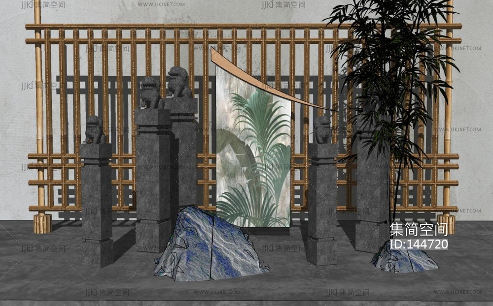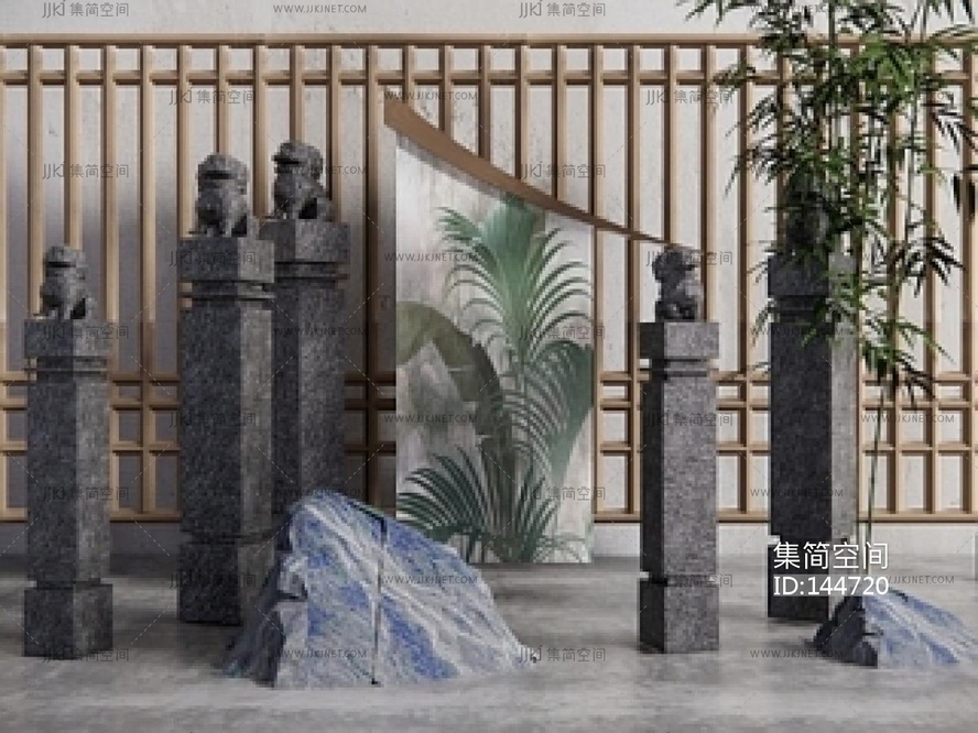 新中式中式雕塑摆件桩SU模型 su草图模型下载 [模型ID:144720]