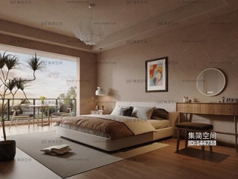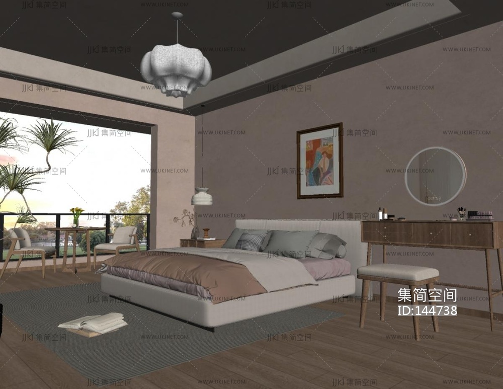 侘寂中古家居卧室SU模型 su草图模型下载 [模型ID:144738]