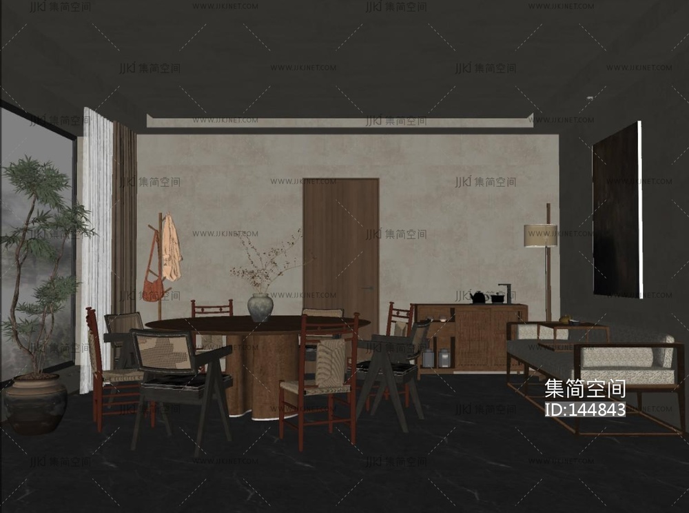 11新中式餐厅包间套间,接待室、中式接待室、中式沙发茶几组合、中式圈椅、新中式餐厅、圆形实木中式餐桌椅 (1)su草图模型下载