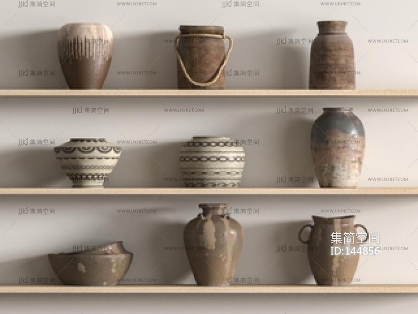 侘寂风陶罐组合SU模型 su草图模型下载 [模型ID:144856]