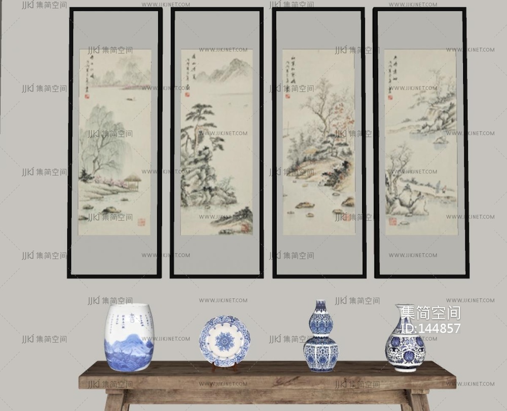 新中式挂画SU模型 su草图模型下载 [模型ID:144857]