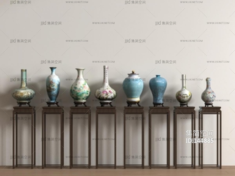 新中式陶瓷器皿中式古董摆件瓷组合su模型su草图模型下载