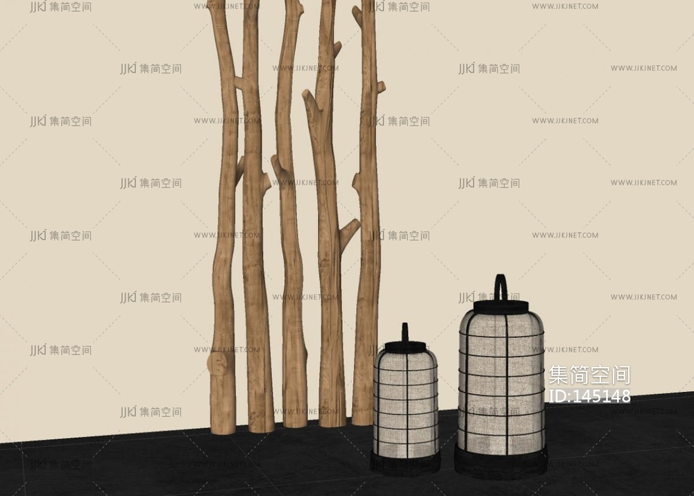 新中式侘寂景观灯SU模型 su草图模型下载 [模型ID:145148]