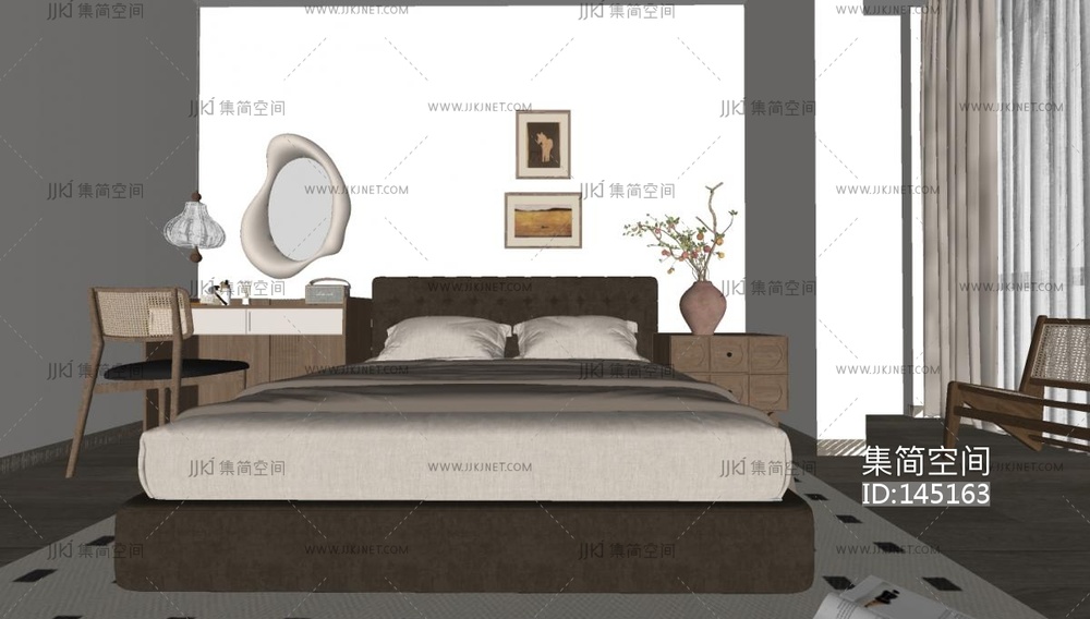 中古侘寂家居卧室SU模型su草图模型下载