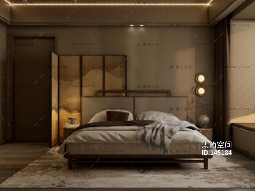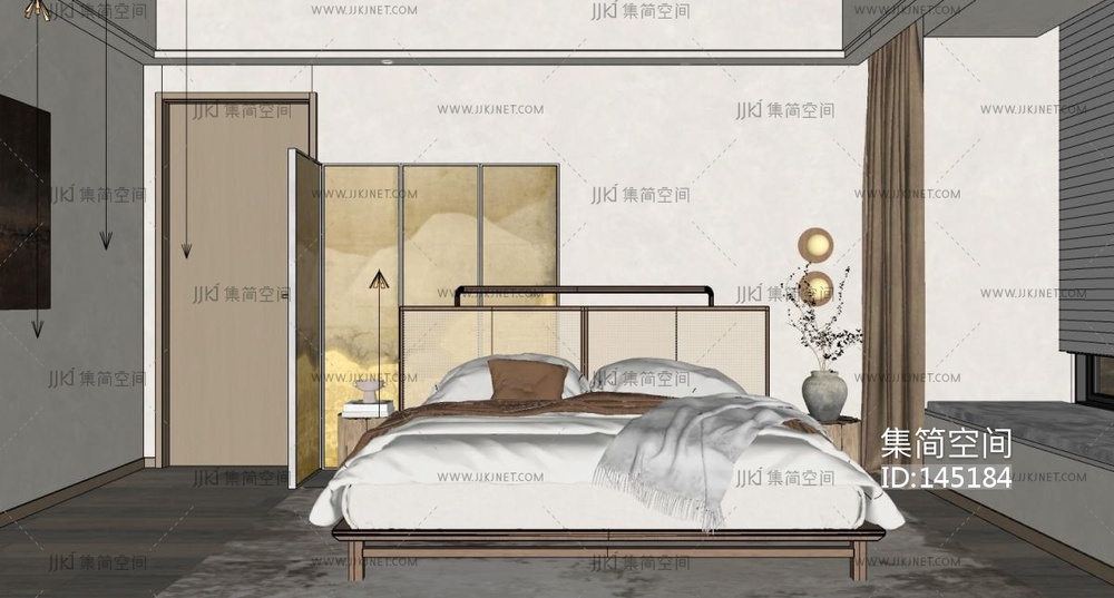 侘寂中古家居卧室SU模型 su草图模型下载 [模型ID:145184]