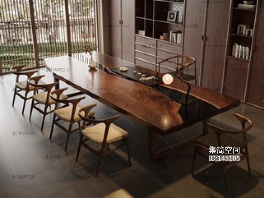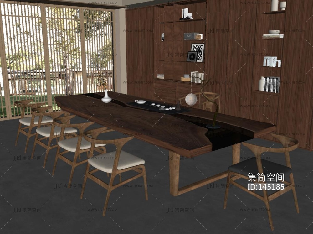 新中式茶室_新中式茶室_禅意茶室_茶桌椅SU模型su草图模型下载