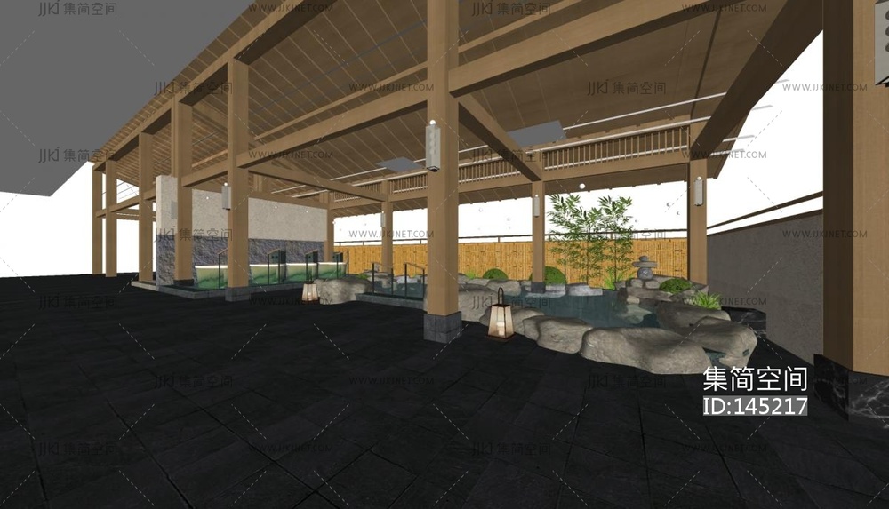日式 温泉 室外露天 su草图模型下载 [模型ID:145217]