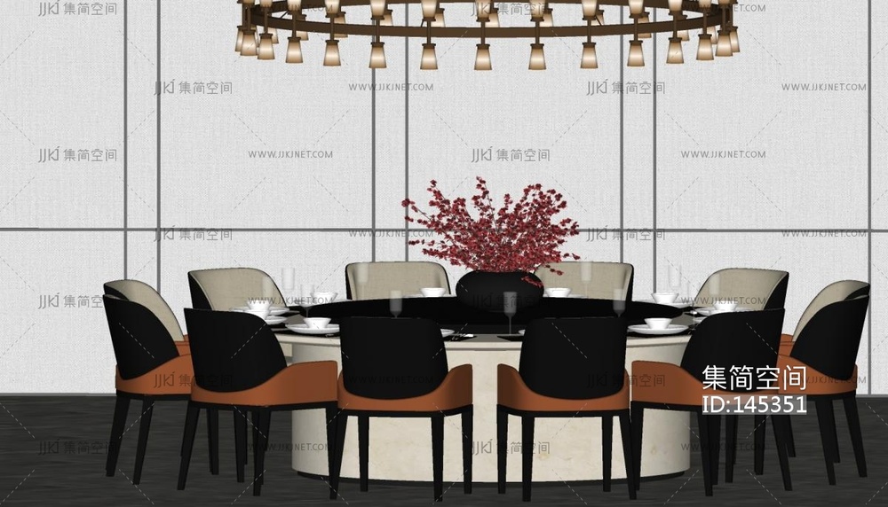 明德设计现代轻奢餐厅 su草图模型下载 [模型ID:145351]