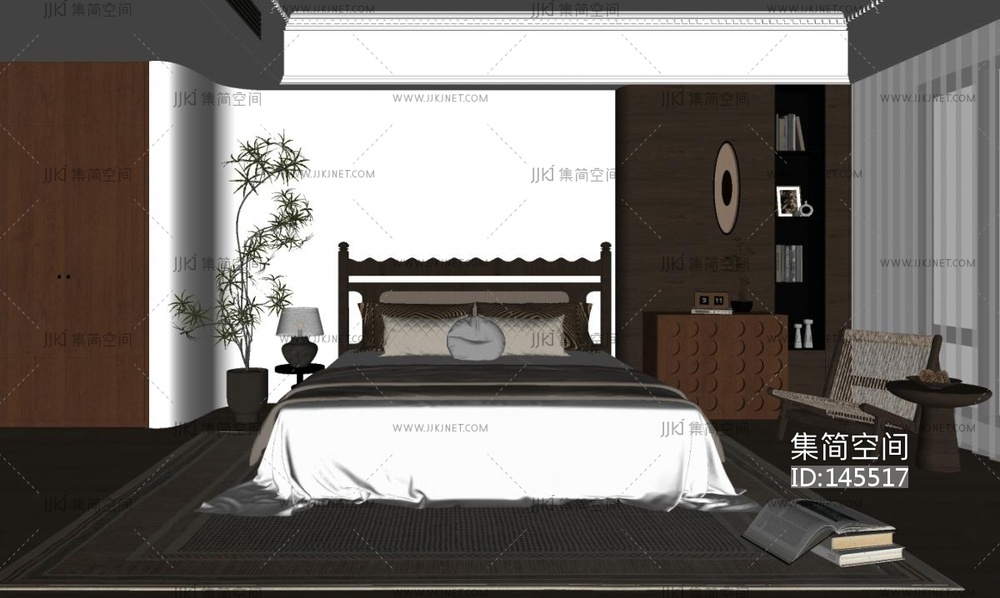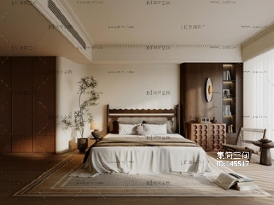 侘寂中古家居卧室SU模型 su草图模型下载 [模型ID:145517]