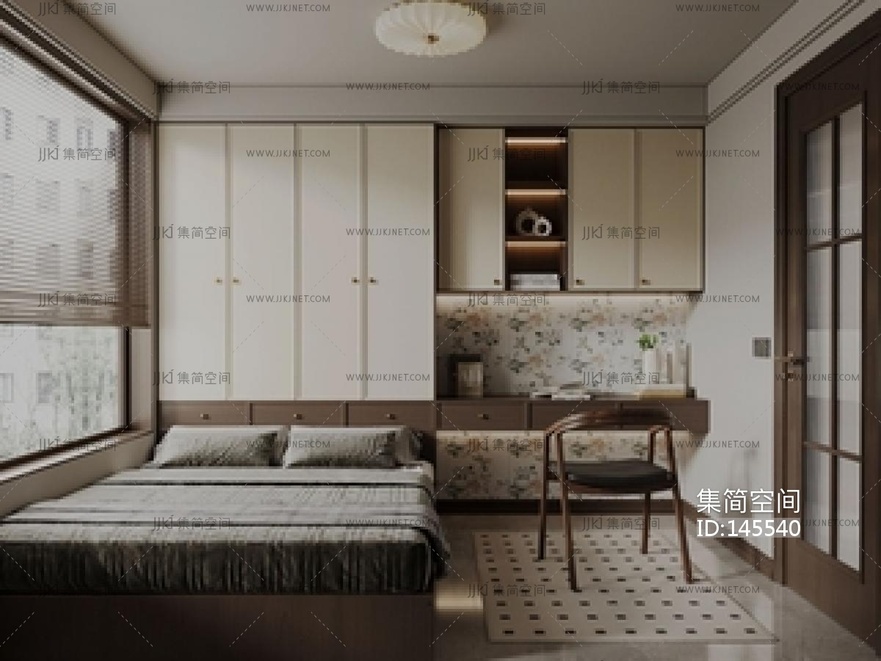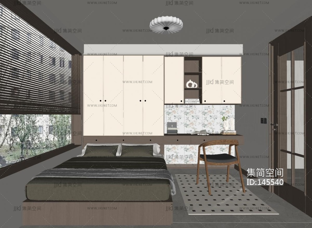 中古复古榻榻米卧室SU模型 su草图模型下载 [模型ID:145540]