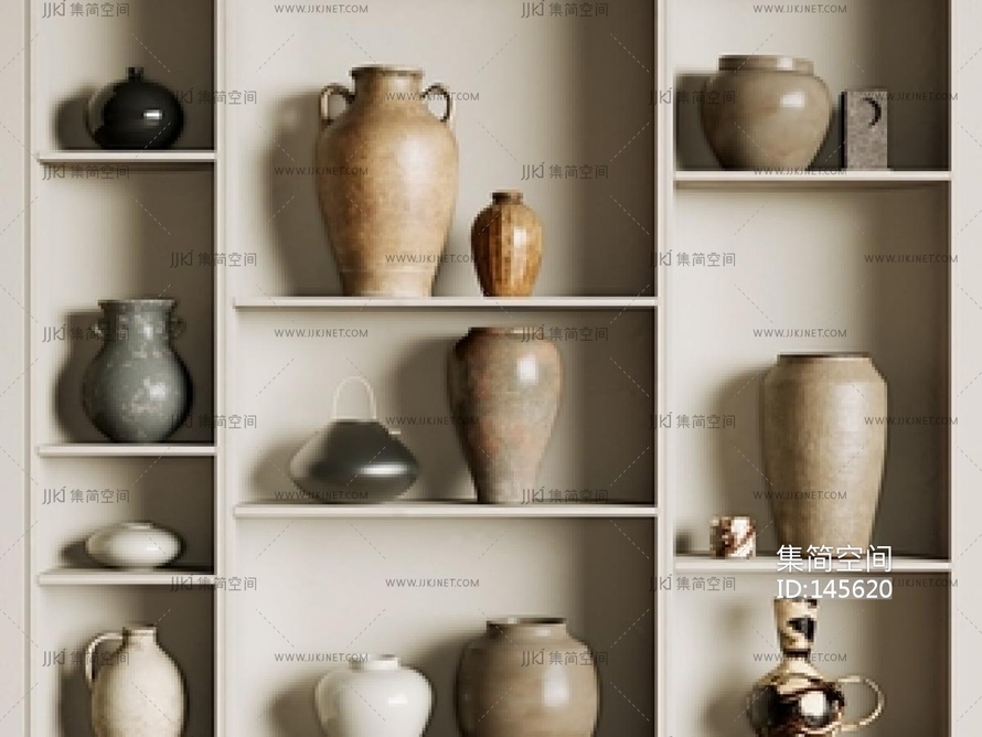 侘寂风陶罐器皿组合SU模型 su草图模型下载 [模型ID:145620]
