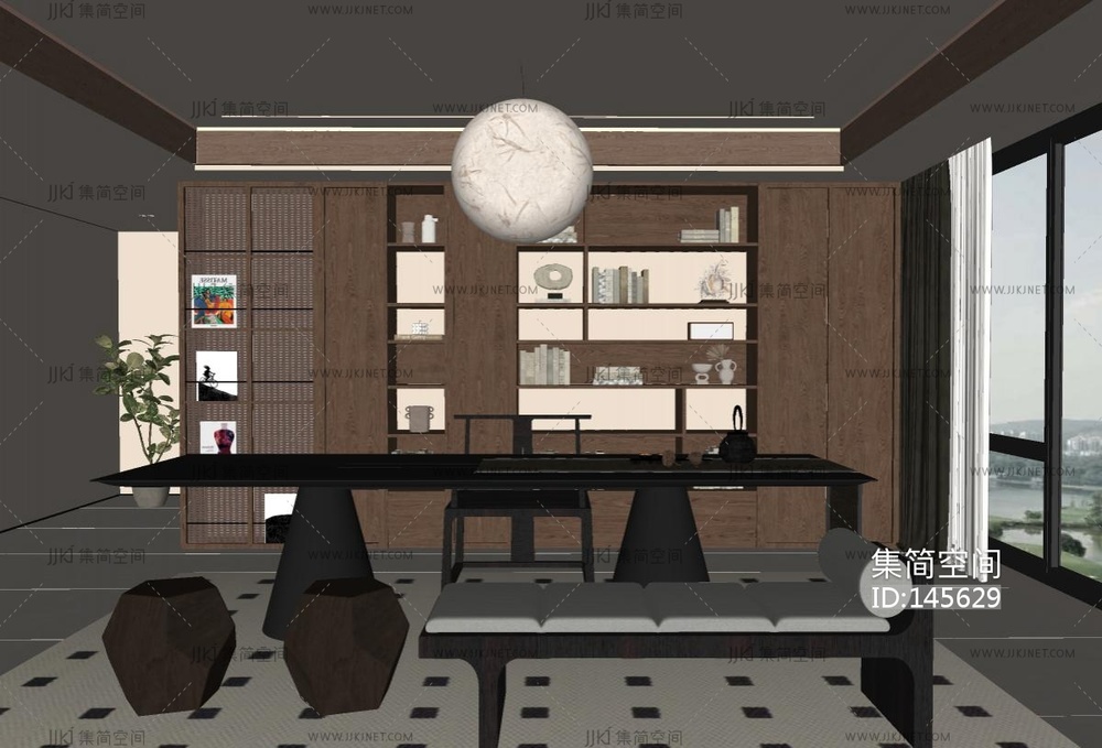 新中式茶室_新中式茶室_禅意茶室_茶桌椅SU模型su草图模型下载