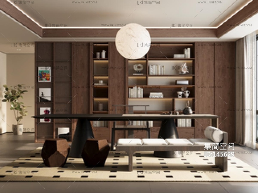 中古侘寂茶室_侘寂中古风茶室_中古风茶室_茶桌组合_现代中古风茶室_茶室SU模型su草图模型下载