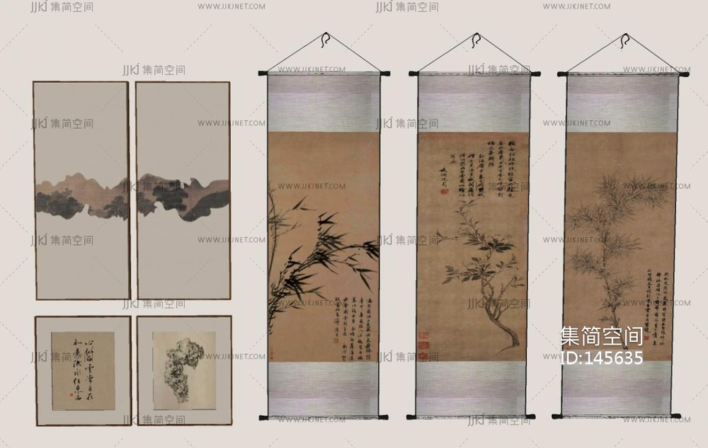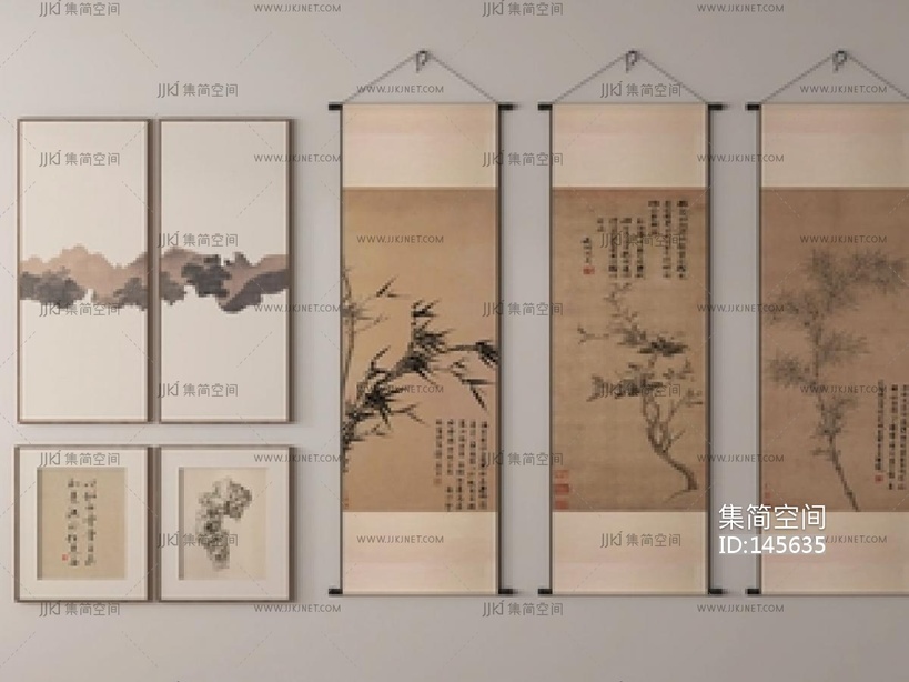 新中式挂画组合SU模型 su草图模型下载 [模型ID:145635]