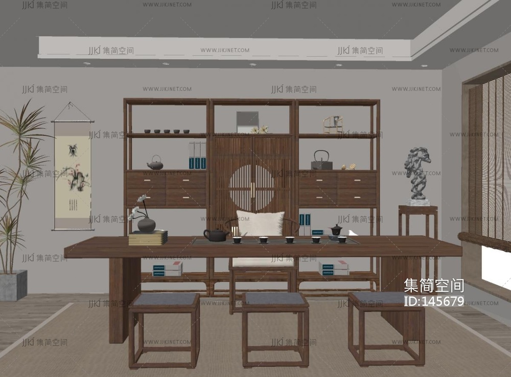 新中式茶室_新中式茶室_禅意茶室_茶桌椅SU模型su草图模型下载
