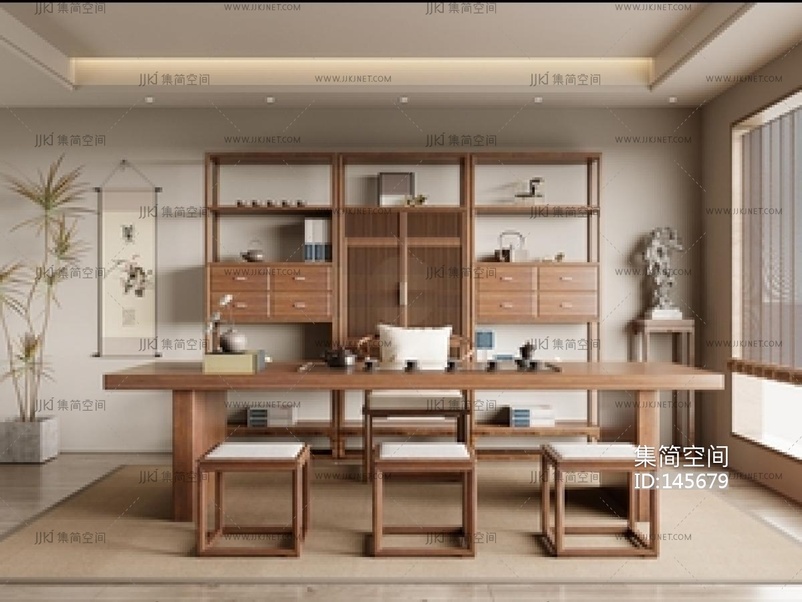 中古侘寂茶室_侘寂中古风茶室_中古风茶室_茶桌组合_现代中古风茶室_茶室SU模型su草图模型下载
