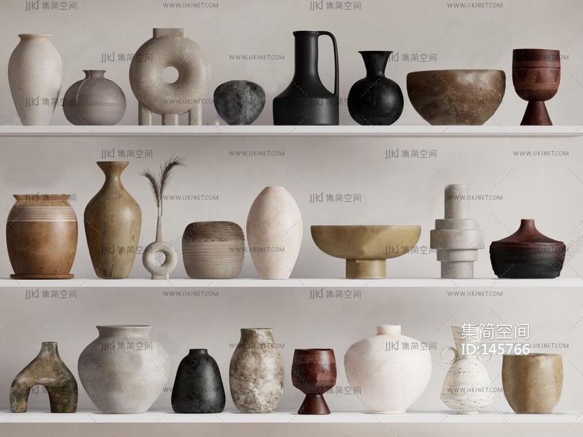 侘寂风陶瓷器皿陶土罐 su草图模型下载 [模型ID:145766]