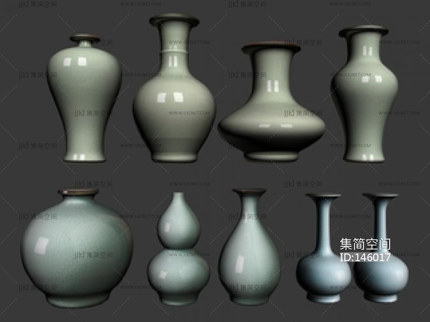新中式中式瓶罐器皿组合SU模型 su草图模型下载 [模型ID:146017]