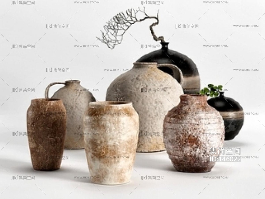 侘寂瓶罐器皿组合SU模型 su草图模型下载 [模型ID:146022]