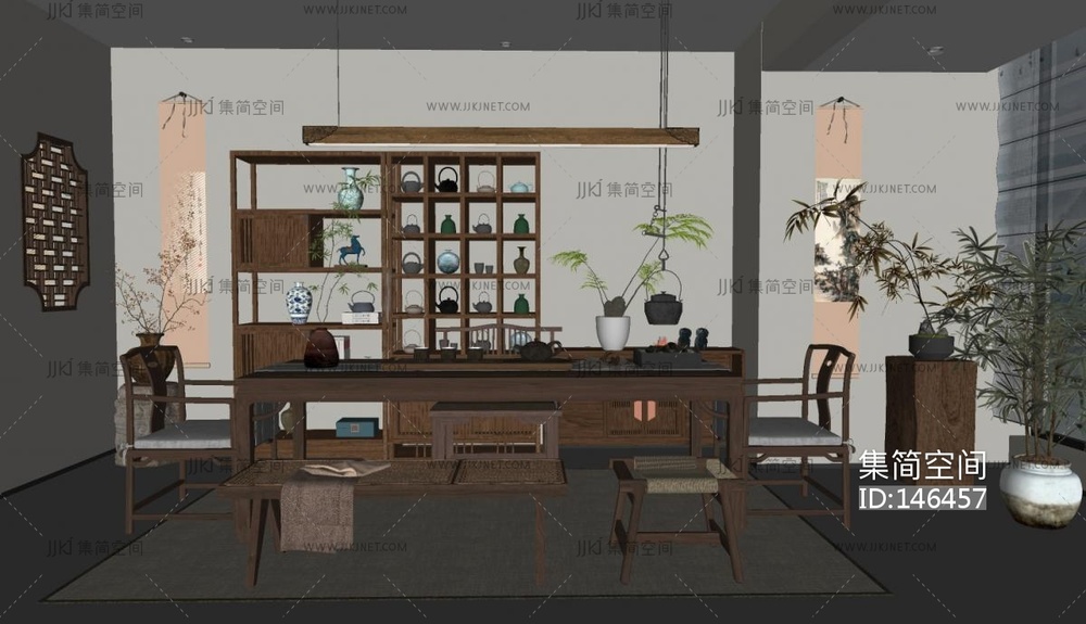新中式茶室SU模型 su草图模型下载 [模型ID:146457]