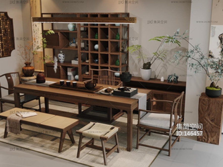 新中式茶室_新中式茶室_禅意茶室_茶桌椅SU模型su草图模型下载