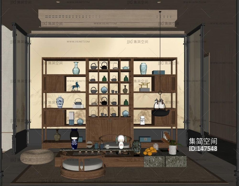 新中式榻榻米茶室SU模型 su草图模型下载 [模型ID:147548]