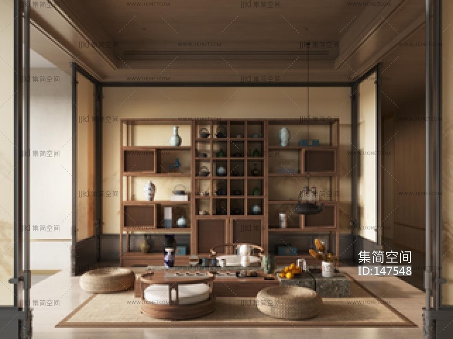 新中式中式茶室_新中式禅意茶室_榻榻米茶室SU模型su草图模型下载