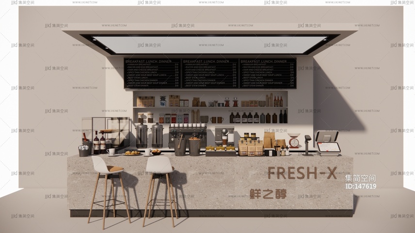 工装 奶茶店 甜品店 咖啡店 (30)su草图模型下载